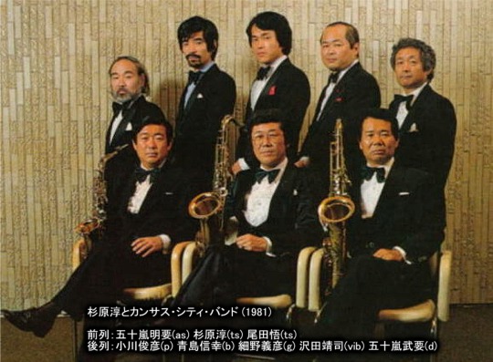 淳さんでしたが、沢田靖司トリオに杉原さんが加わって出来たバンドです。1981年、Kansas City Bandというバンドでの東芝レコードの吹込みがありました。その時の若々しい写真が出てきました。 |