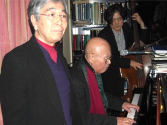 今年の4月にはサンフランシスコから長部正太が来る予定でしたが、震災の直後で来日を半年延期しました。 そこで、急遽、二村希一が参加してくれました。 ベースはお馴染みの横山 裕です。 |