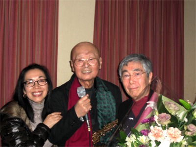 師匠もすっかり元気になりました。 去年は春に1回、秋に1回半転んで頭を打ったり顔をすりむいたり最悪の年でした。 それでも、サリナのコンサートには入院中の病院から車椅子で来ました。 今日は自分で歩いて来られました。 |