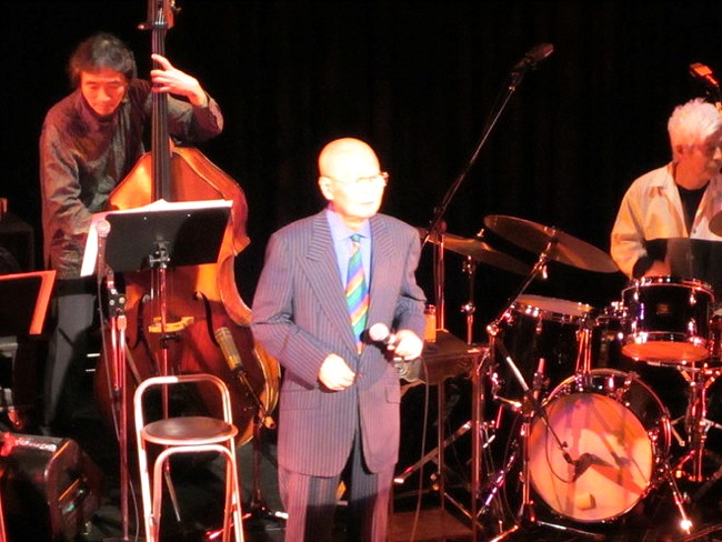 バイパス手術をうけて初めてのライブ出演。回りは気が気でない。一昨年だったか、JZ Bratでバタンって倒れてしまったのを思い出す。「大丈夫だ」と言っていたのだが、その直後に、家の近くで転んで顔も頭も傷だらけになった。2010年11月だった。 その年の12月にサリナ・ジョーンズが来日した。「どうする?行くなら切符とっておくけど」って聞いたら、入院中の駒沢の病院からタクシー・車椅子で日本橋三井ホールまでやってきた。頭に包帯ぐるぐる巻いて正ちゃん帽をかぶっているのだから、サリナもびっくりしていた。 人生、2度目の大手術を2011年11月末に受けた。最初は30年以上前のこと、このときは脳の手術だった。10年後くらいに後遺症が出て手がしびれてピアノが弾けないと言う。いろんなことがある度、回りの人たちに心配をかけてきた。 今度は心臓だ。冠状動脈が狭窄、放っておけば心筋梗塞になってしまう。バイパス手術を受けることになった。国立東京医療センターの先生が人工透析でカチカチになった冠状動脈に2本のバイパスを入れてくれた。今夜のライブは術後2ヵ月半のこと、舞台で歩くと危なっかしくて眼を瞑ってしまうよ。でも、声はちゃんと出ていた。 もうすぐ82歳の松尾先生までヒヤヒヤして見ていたのだから。とにかく、このジャズ・ボーカルの大家は満身創痍なのだ。満身創痍というと、ドリー・ベーカーを思い出す。ドリーも満身創痍だった。ライブ中に倒れて救急車で運ばれ、ペースメーカーを埋め込まれてしまった。それ以前には大腿骨を金属の骨に入れ替えたこともある。ドリーばあちゃんは長生きしている。この間、2月7日には90歳になった。 沢チン、大丈夫だ。ただ、転ばないように歩いておくれ。頼むよ。(2012/2/16) |